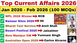 Jan–Feb 2026 Complete Current Affairs | 100 Most Important MCQs
