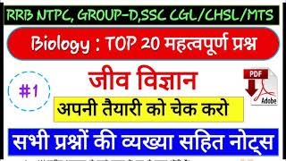 General science important questions | Biology mcq | जीव विज्ञान mcq | बायोलॉजी प्रश्न | RRB NTPC,SSC